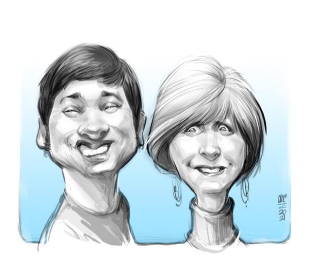 We start with a sketch of the people or subject matter and send you a draft of the caricature illustration for approval and feedback.